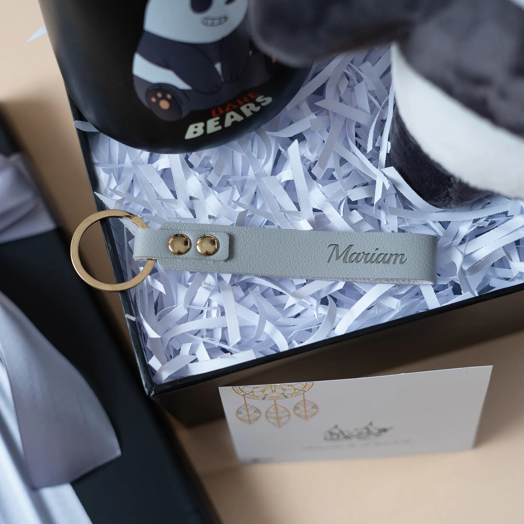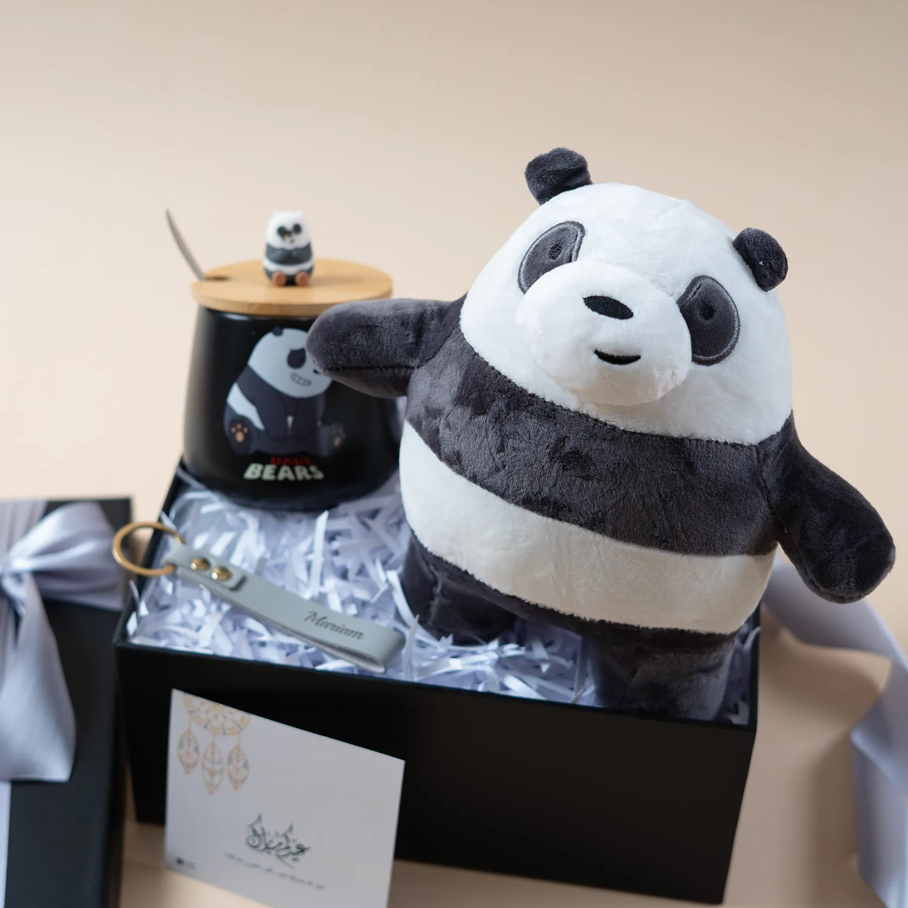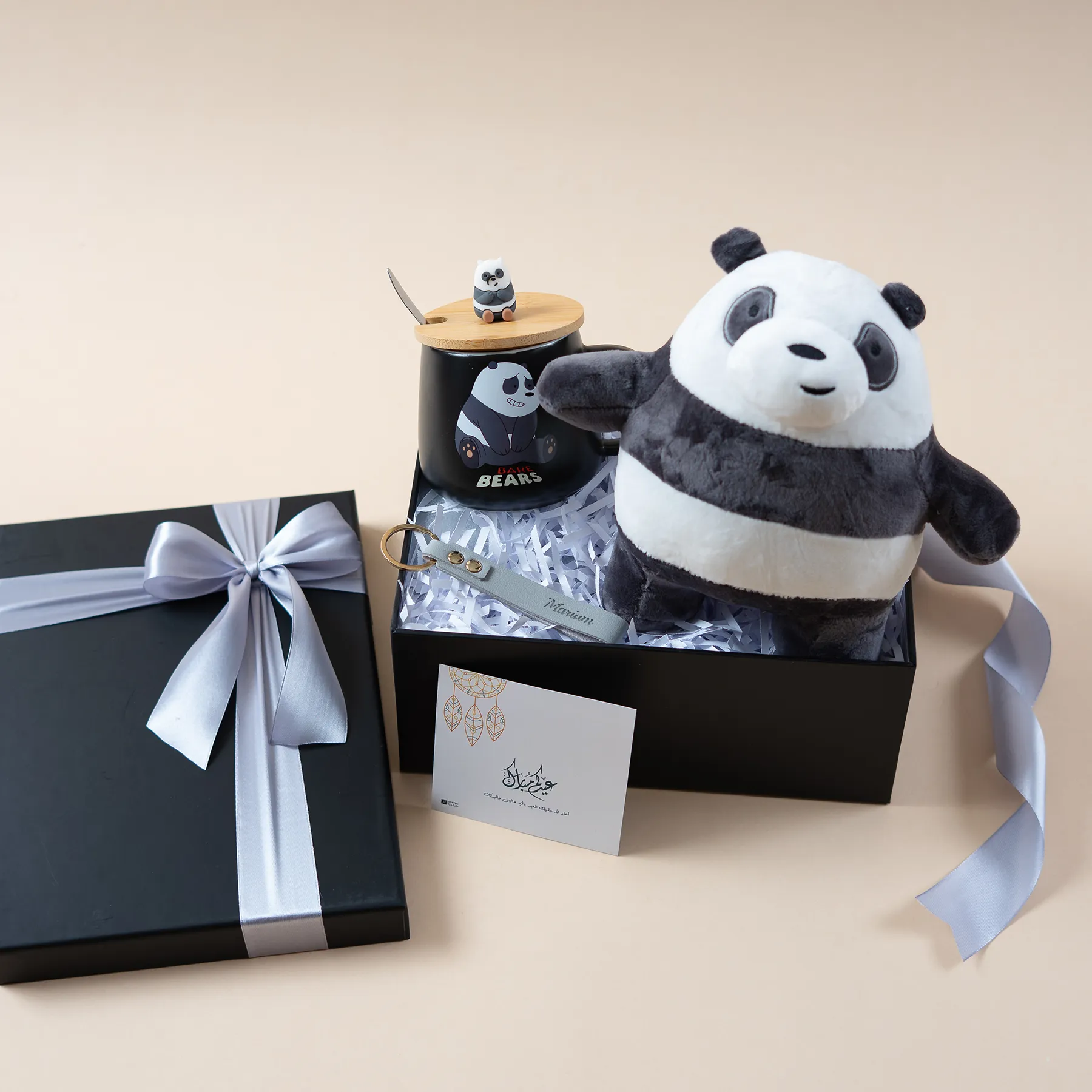 هدية لا تشبه أي هدية! تناقضٌ جميل بين الفخامة والبساطة: دبدوب أبيض وأسود يعكس أناقتهم، وكوب قهوة بغطاء خشبي يروي حكاية ذوقهم الرفيع، وميدالية تُجَمد اسمهم في ذاكرة الزمن.