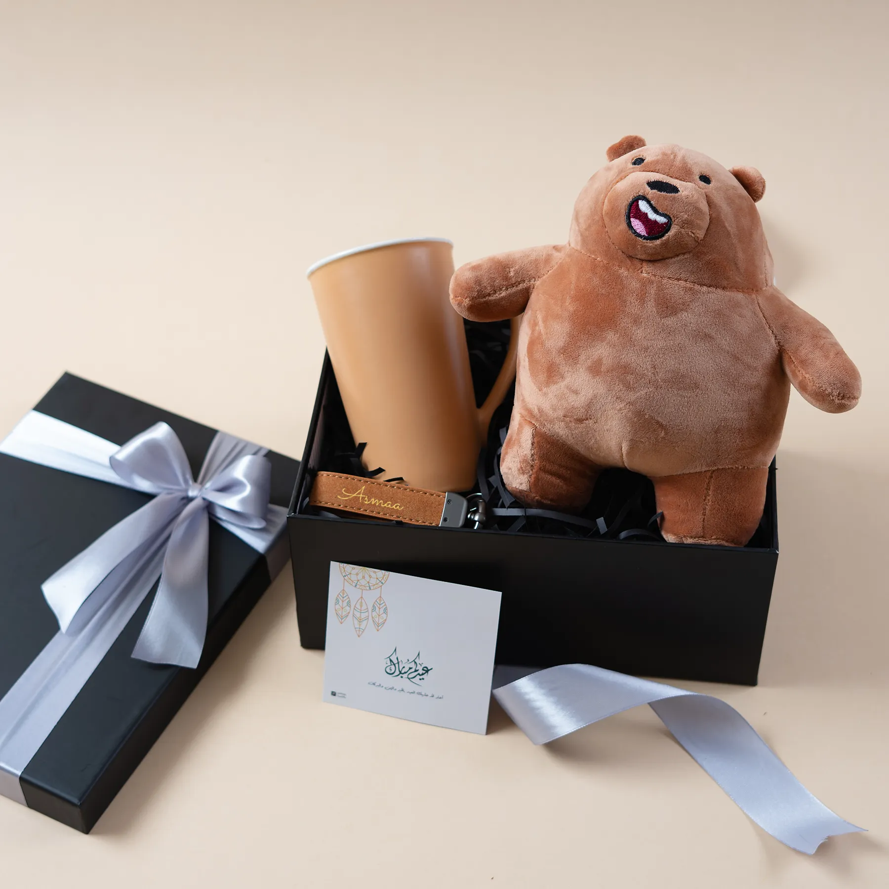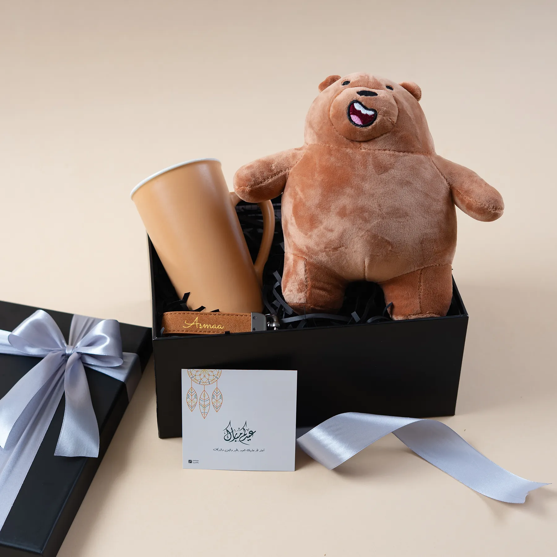 هذا الصندوق هو احتضان دافئ في شكل هدية! دبدوب ليُذكرهم بالطفولة البريئة، وكوب قهوة كبير ليُدفئ أيامهم الباردة، وميدالية تحمل اسمهم كعهدٍ بأنهم لن يُنسَوا أبداً.